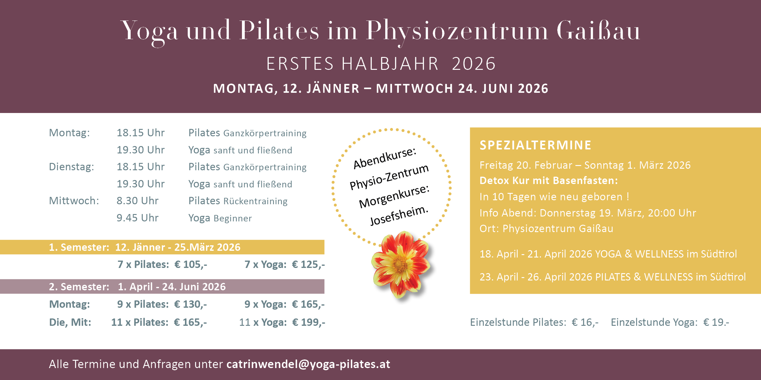 Bitte telefonisch unter +43 664 312 96 98 oder per Mail an catrinwendel@yoga-pilates.at